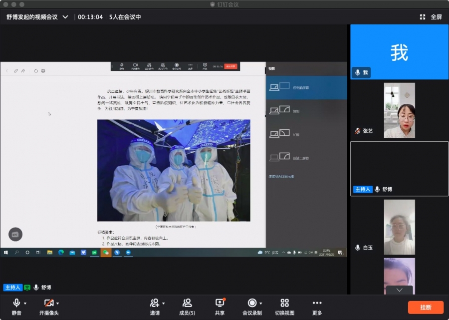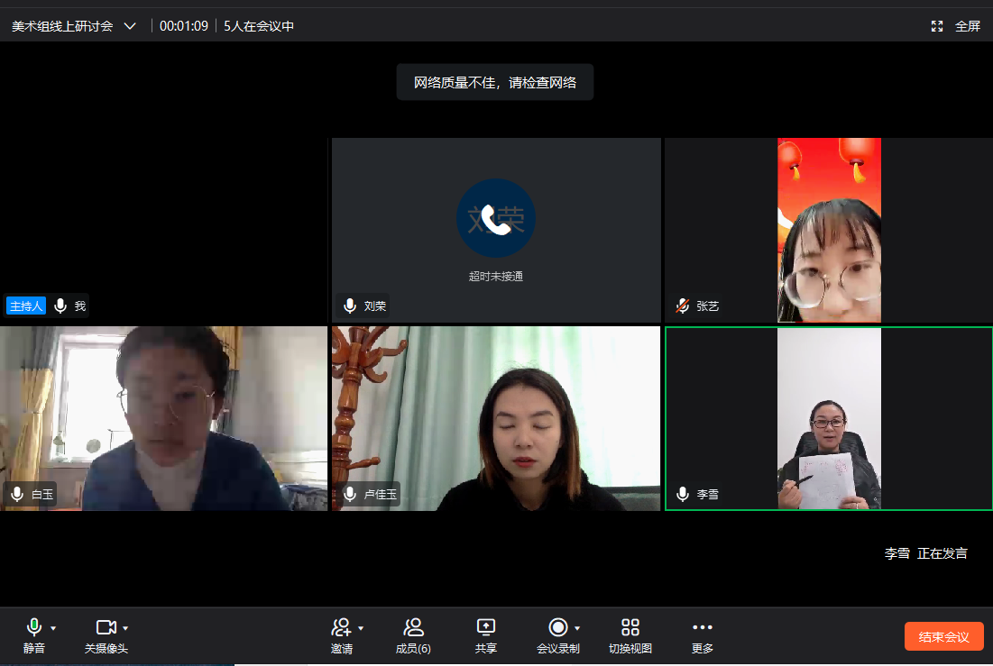 根据《宁夏回族自治区应对新冠肺炎疫情工作指挥部公告》中有条件的进行线上教学的要求。为深入贯彻应对新型冠状病毒肺炎疫情防控工作精神,落实完成“空中课堂”线上教育的根本任务。2021年10月27日上午,银川市金凤区第十二小学美术组教师在李雪老师的组织下,参加线上教学研讨会议。