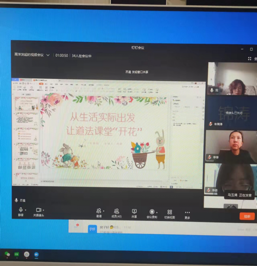 一年级道法老师以“从生活实际出发,让道法课堂生根开花”为主题,从“做好课前活动、组织课堂活动和多种形式延伸”这三方面具体讲述了在疫情期间如何联系学生生活实际上好道法课。