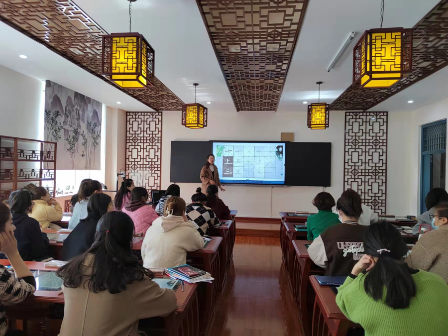 为弘扬中国传统文化,提高教师书法素养,促进教师专业成长,勤练书法教学基本功,让语文老师们尽快熟练使用书法教室进行教学,金凤区第十二小学于2022年3月3日下午,对全体语文教师进行了专业的数字化书法教室使用的培训。培训由设备提供方瀚和公司的梁悦老师主讲。梁老师从设备的使用、系统的组成、如何上书法课等方面对老师进行培训。学校建成的书法教室,可以实现教、学、练、创、评、录、播、临、摹等功能,实现教学的标准化、规范化、流程化、数字化、高效化。经过培训和实操,参加培训的教师初步掌握了数字化书法教室设备的使用。