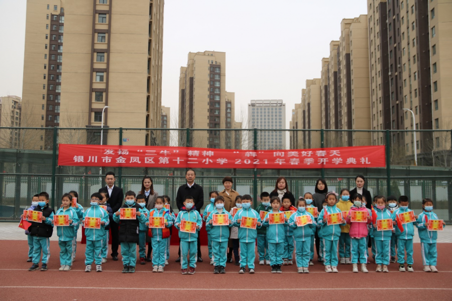 伴随着新年的欢笑,我们昂首阔步踏进了充满机遇的牛年。为明确新学期的奋斗目标,为新学期创造一些良好的开端。2021年2月26日下午银川市金凤区第十二小学的全体师生在操场举行了发扬“‘三牛’精神,‘犇’向美好春天”为主题的开学典礼活动。