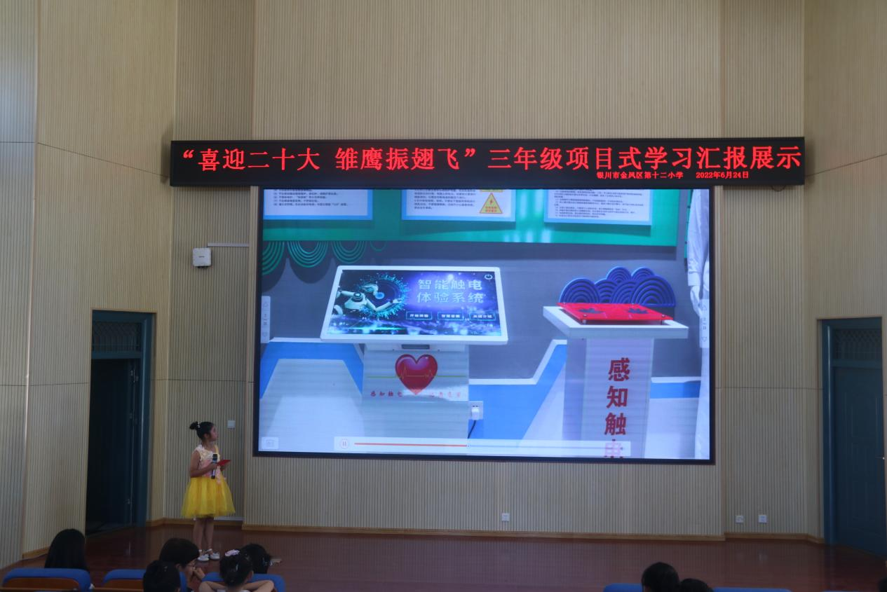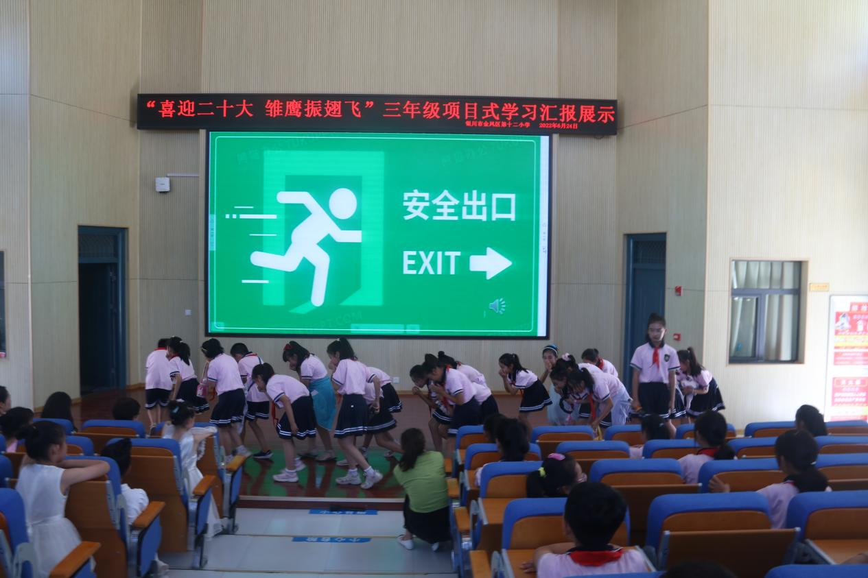 首先,全体师生一起回顾了项目式学习的启动仪式及本学期开展的四次以“防火用电安全”为主题的活动:孩子们聆听了警察叔叔的消防安全讲座;在VR教室亲身体验了火灾发生时如何进行自救;在音乐、美术等综合课程上,用电脑软件绘制出一幅幅消防安全标志;用歌声和画笔向可爱又可敬的消防员叔叔们致敬。在安全体验馆,孩子们感受到了触电的威力,通过安全知识问答丰富了关于防火用电知识的储备。一次次的活动让同学们明白了安全无小事,并将防火用电安全知识牢记于心。