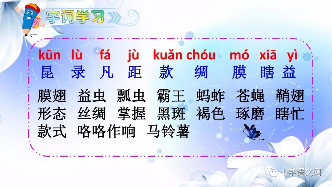 昆(昆虫) 录(录取) 距(距离) 绸(丝绸) 膜(薄膜)