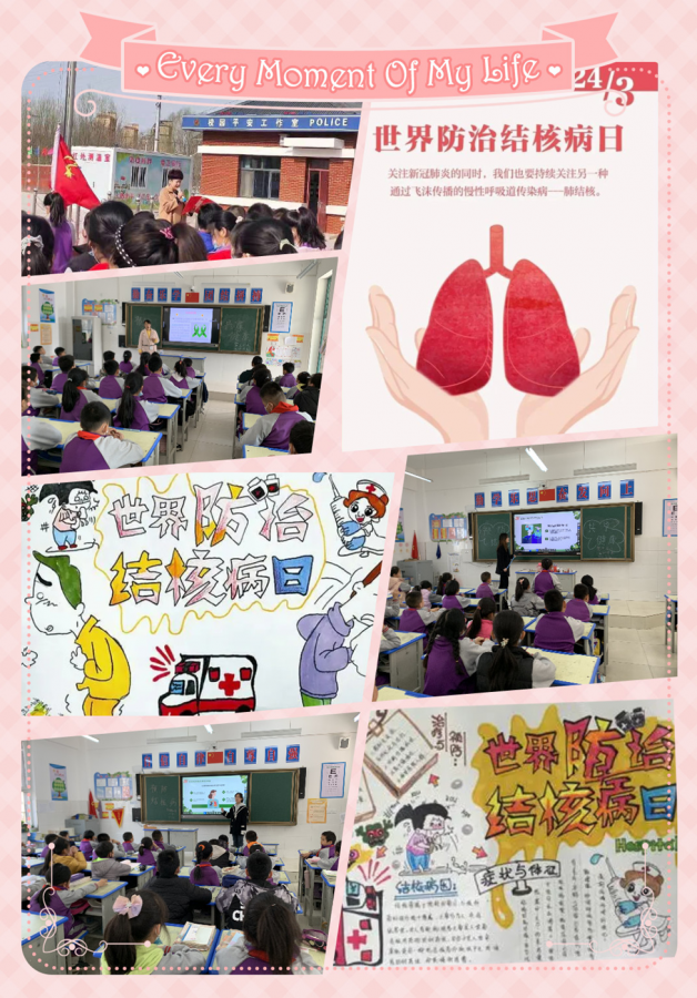 学校首先于3月21日早上开展了以“防治结核病,人人保健康”为主题的国旗下讲话,刘梅副校长从肺结核病的发病概况、结核病的定义、结核病的特征、传播途径等方面进行了具体地阐述,进一步提高了全校师生预防结核病的认识,增强学生卫生习惯养成和自我防范意识。3月22日下午第一节课,各班积极召开“生命至上 全民行动 ,共享健康 终结结核”主题队会。班主任通过图片、视频等方式为同学们进行了详细地讲解,重点介绍了结核病的病因、传播途径、治疗的方法以及如何预防结核病等知识,使同学们充分认识到防控结核病的重要性。为了将自己所了解到的知识,宣传给更多的人,好多同学还自发制作了“预防肺结核病的手抄报。学校还通过微信公众号向学生和家长推送结核病预防知识,并号召同学们小手拉大手将所学到结核常识向父母讲解,从而扩大宣传范围和影响力,增强家长主动报告和配合做好患病学生管理工作的意识。