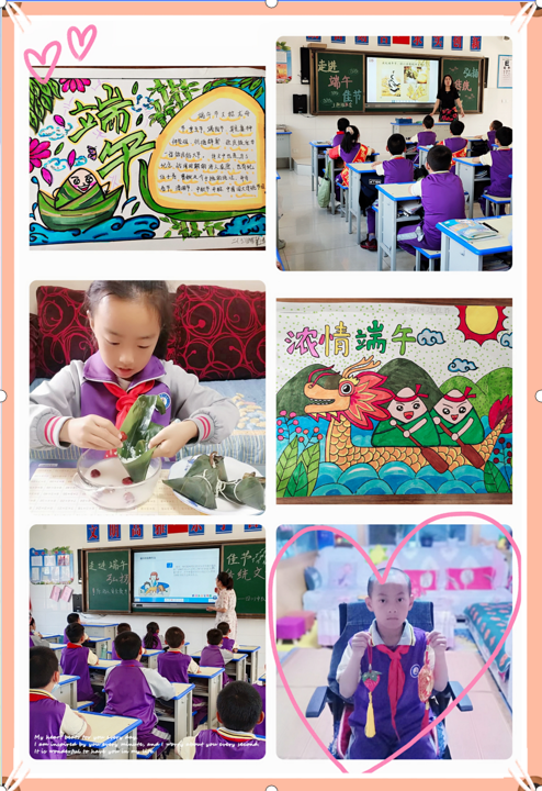 端午节来临前夕,各个班级围绕“走进端午佳节,弘扬传统文化”这一主题,精心准备,利用班会活动时间,组织学生通过丰富的文字、图片、视频资料等学习了有关端午节的民谣、由来、和习俗等知识,让学生充分理解了端午节不只是粽子节、龙舟节,更是民族节、爱国节,激发了学生的爱国热情和民族自豪感,营造了浓厚的节日气氛。