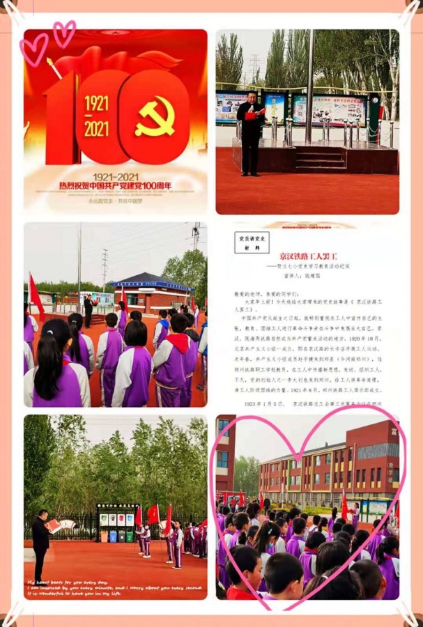 4月26日的升旗仪式上,贺兰七小党支部书记、校长钱建国与全体师生一起分享了《京汉铁路工人罢工》故事。京汉铁路工人大罢工是中国共产党领导的第一次工人运动高潮的顶点,它进一步显示了中国工人阶级的力量,扩大了党在全国人民中的影响。钱校长的分享用朴实的文字、深情地诉说,引领师生们穿越历史时刻,仿佛又走进了那一段波澜壮阔的时光。 随后,贺兰七小红领巾党史宣讲团成员孙佳鑫同学与同学们一起分享了《少年游击队》的故事,小宣讲员声情并茂,队员们听得津津有味,经历了一次红色精神的洗礼。“此次党史宣讲活动,我们在校长和宣讲团成员的述说中,学习了党的一段历史,知道了祖国建设的伟大成就和今天的幸福生活归根结底来源于党的正确领导”,队员王奕鑫这样说。