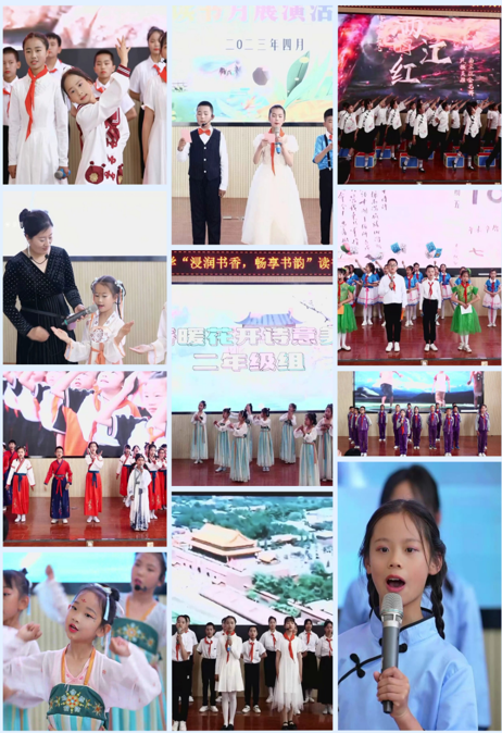 陪伴是给孩子最好的礼物。在陪伴中,让孩子体会到亲情的温暖与关怀。一年级家长与孩子共同参与,在诵读中走进经典;二年级同学以诗意绘春天,以手势舞展示朗读的美好体验;三年级的《英雄时代》更是让我们感受到了当今美好生活的来之不易;四年级的《盛世中国》让我们看到了一代又一代信心满怀、扬帆奋进中的华夏子孙;五年级每个班都用别样的方式让学生徜徉于经典之间;六年级的展演紧跟时代步伐,展现了诗情画意风雨路,奋斗时代新征程的美好前景。