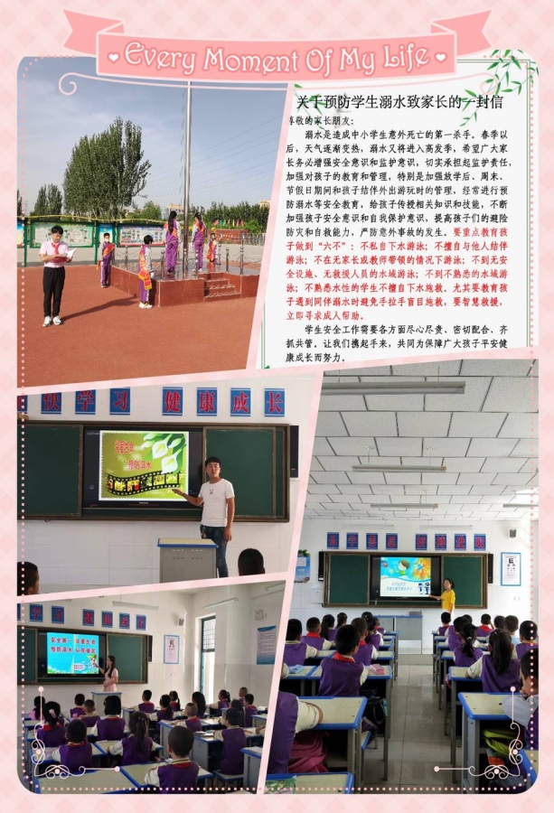 随后,学校少先队开展了“珍爱生命,预防溺水”主题教育活动,活动中大队辅导员鲁苗苗老师宣读了“贺兰七小防溺水倡议书”,向师生阐明了私自下河游泳的危险性,要求全体师生严守学校纪律,时刻注意安全,珍爱生命,预防溺水。升旗仪式结束后,各班主任及时开展“珍爱生命,预防溺水”主题班会,通过让学生观看防溺水安全教育片,使学生更形象直观地了解水域边玩耍的危险及注意事项:不独自到池塘边、河边或田间水沟玩水、嬉戏,不独自或和同伴去河边游泳,当发生同伴溺水危险事故时及时向附近的大人求救,不得自行组织救助等。各位老师还通过开展防溺水安全教育,传授学生一些自防自救的知识,提高学生自防自救能力。