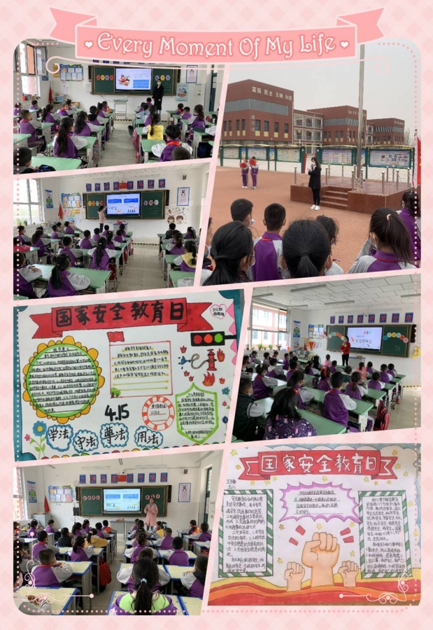 学校首先在周一开展以“强化国家安全意识,创建平安和谐校园”为主题的升旗仪式。李红霞老师向全体师生介绍了全民国家安全教育日的来历,规定的具体日期及设立的主题和意义,增强了全体师生的国家安全意识;同时通过微信短视频、电子屏等方式宣传国家安全的重要性,增强我校师生维护国家安全的贲任感,使之内化于心、外化于行,真正做到居安恩危;随后各班还积极以“树牢总体国家安全观,感悟新时代国家安全成就”为主题召开队会,带领学生学习了《中华人民共和国反恐怖主义法》、《中华人民共和国国家安全法》、《中华人民共和国网络安全法》等法律法规,让大家意识到法律的重要性,使每位同学都能积极学习,做到知法、用法、守法。为了将自己所了解到的知识宣传给更多的人,好多同学还自发制作了安全知识手抄报,使安全教育知识得到了应用,安全意识更进一步增强。