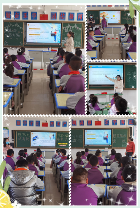 队会课上,各班中队辅导员充分利用多媒体课件,给队员们讲解了什么是电信网络诈骗;告诉孩子们如何预防电信网络诈骗;如不要随意泄露个人信息,不要相信不明来源的电话、短信、邮件等信息,不要轻易点击陌生链接和附件,学会如何处理电信网络诈骗。并叮嘱同学们一旦发现自己被骗,要及时报警,并尽快联系银行或者其他相关部门,采取必要的措施挽回损失。学校还通过向学生和家长发放《预防电信网络诈骗致家长一封信》,向广大家长积极宣传防范电信诈骗的安全知识,时刻敲响警钟,加强防护,使本次活动真正落到实处。