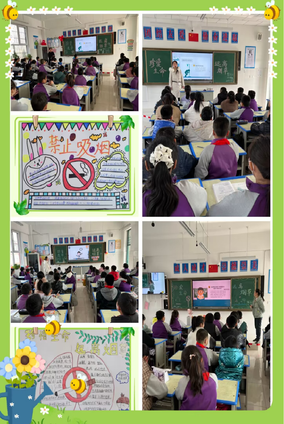 学校首先利用公众号、电子屏及广播站等,让全体师生进一步了解烟草的危害,同时利用“小手牵大手”号召家长坚决摒弃吸烟行为,珍爱生命。随后,各班积极开展“珍爱生命 远离烟草”主题队会。队会课上,班主任们向学生讲述了烟草的化学成分、吸烟和被动吸烟给自身和社会带来的危害等知识,号召同学们从自身做起,远离烟草,争做小小控烟宣传员,向家人和邻居宣传吸烟的危害。同学们还积极动手绘制禁烟、戒烟手抄报和绘画作品,使本次活动真正做到了入脑、入心,取得了良好的效果。