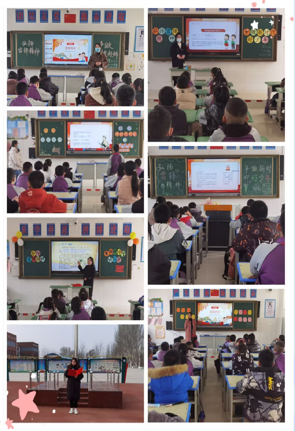学校首先利用升旗仪式向全校师生发出了“传承弘扬雷锋精神,争做新时代好队员”的活动倡议,号召全体师生积极传承、践行雷锋精神。接着,各中队开展了主题队会,通过师生观看雷锋故事影视纪录片、传唱歌曲《学习雷锋好榜样》,了解雷锋成长经历,学习雷锋典型事迹,传承雷锋"螺丝钉精神”,颂扬雷锋助人为乐、积极进取的优秀品德。会后,同学们还通过绘制“学习雷锋精神”主题手抄报,诠释着自己心中的雷锋精神,用稚嫩的笔触表达了对雷锋叔叔的敬意,以及向雷锋叔叔学习的决心!雷锋精神像春风化雨润泽了同学们稚嫩的心灵,播下了助人为乐、无私奉献的种子。