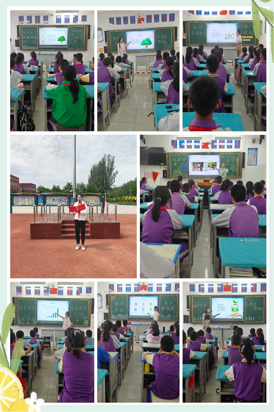 首先,德育处利用升旗仪式向全校师生发出倡议:“保持环境卫生,养成不丢垃圾,发现乱丢垃圾现象及时制止,见到垃圾立即捡拾的好习惯;节约水资源,随手关好水龙头;爱护身边的花草、树木,不乱踩草坪;讲究卫生,从我做起,从小事做起,从现在做起”。随后,各班利用班队会时间召开了“我爱绿色生活, 共创生态文明”主题班会。班主任通过视频播放、图片展演的方式,向同学们详细讲解了目前我国的环境现状、环境污染的主要来源、环境污染的危害等方面的内容,同时,向学生传达了“低碳绿色”生活的理念,给学生以积极的熏陶和影响,组织和引导学生从身边做起,从点滴小事做起,从小养成节约资源、爱护环境的环保意识和良好的行为习惯。