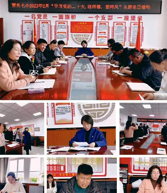 以德为本,育师先育德。为深入学习贯彻落实党的二十大精神,进一步加强师德师风建设,增强教师立德树人的责任感。2月24日上午,贺兰七小党支部召开“学习党的二十大,修师德,塑师风”主题党日活动。本次活动由学校党支部书记马丽同志主持,全体党员参与。