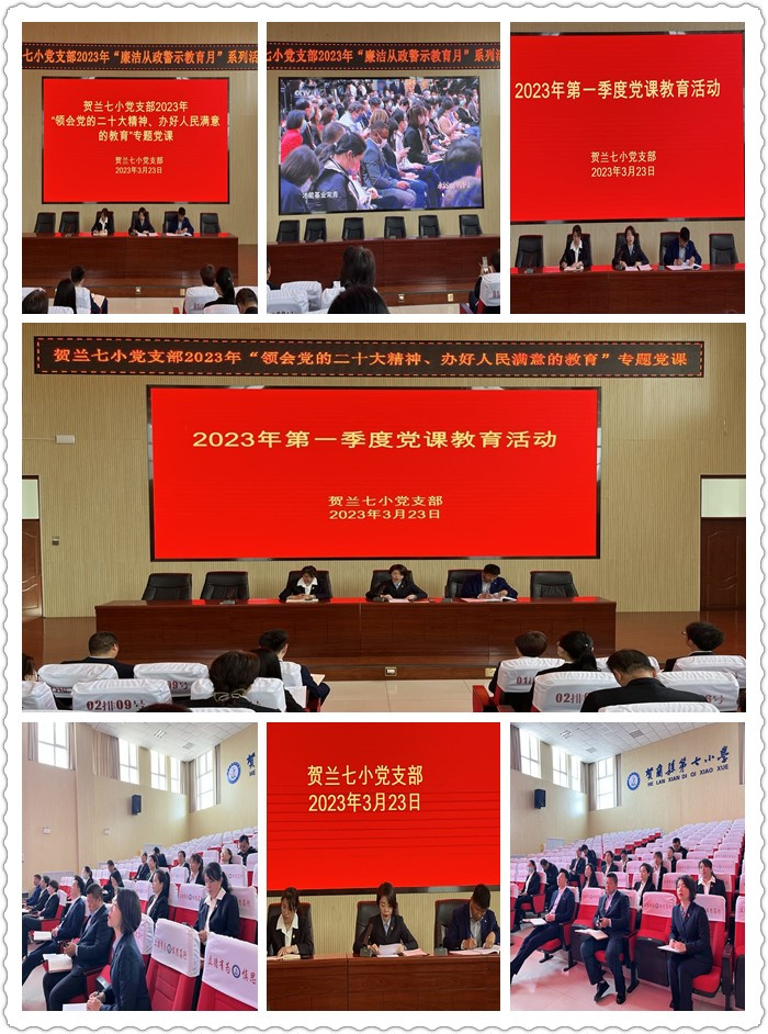 为认真学习贯彻落实党的二十大精神、习近平总书记视察宁夏重要讲话指示批示精神,认真落实区市县党委、政府各项工作部署要求,扎实推进2023年重点工作任务,提振贺兰七小全体党员干部教职工干事创业的精气神,按照贺兰县教育系统《关于在全县开展“强素质强服务强担当强斗志”能力作风建设年活动的实施方案》,开展好学校“四强”能力作风建设年活动。3月23日下午,贺兰县第七小学党支部开展“领会党的二十大精神,办好人民满意的教育”2023年第一季度党课活动。