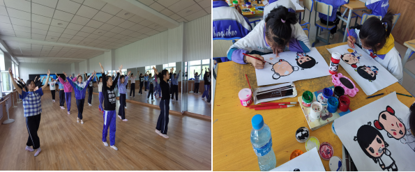 【增强美育熏陶】按国家规定开足开齐艺术课程,把艺术教学工作作为重要课程来抓,保证艺术课程正常开展。组建社团:目前我校组建了学校声乐、舞蹈、手工、书法、美术等社团共计33个,七八年级共1400多名学生全员参与。