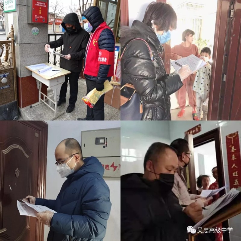 1月31日,冒着严寒和疫情带来的恐惧,吴忠高级中学党员先锋队迎难而上,以身作则、率先垂范,分三个组到社区入户摸排新型冠状病毒感染的肺炎疫情情况,挨家逐户摸排,填写《金星镇新型冠状病毒感染的肺炎疫情防控工作入户摸排登记表》,做到一户一表、一栋楼一汇总。通过入户摸排,严格做到数目清晰、情况明了、毫无遗漏,为社区登记备案。