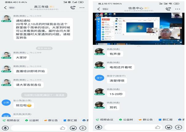 针对老师漏听或不懂的问题又组织了校内各年级的专门培训,语数英学科培训、理化史地会考科目的钉钉使用培训,纳鑫老师、小赵老师、小黄老师不厌其烦的耐心和幽默风趣的话语打消了老师们的畏惧心理,终于在反复试探揣摩中绝大多数老师了解并会正确使用钉钉办公,他们积极的姿态又引领落后的老师迎难而上,以致于年级偏大的老师也学会了下载优课视频给学生及时播放。