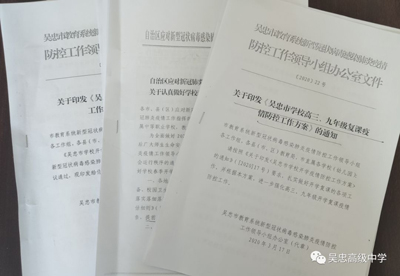 为了认真做好高三复学准备工作,吴忠高级中学提前谋划,科学部署,积极应对,主动作为。目前学校开学筹备工作已经基本完成,接下来将不断细化和完善相关方案和流程,在做好停课不停学的基础上,开展好全体师生防疫防控培训及演练工作,确保学校复学工作平稳有序。