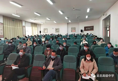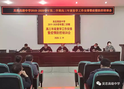 2020年3月19日上午,吴忠高级中学召开了2019-2020学年第二学期高三年级复学工作安排暨疫情防控培训会,疫情防控是大事,事关各个部门的密切配合。学校要求全体中层以上干部、各年级正副组长、高三全体教师、三处人员、实验员、全体保安人员、餐厅管理炊事人员、宿管员、卫生保洁员、绿化人员等参加培训会,全体参会人员戴口罩,隔座位就坐。本次会议由李学儒副校长主持。