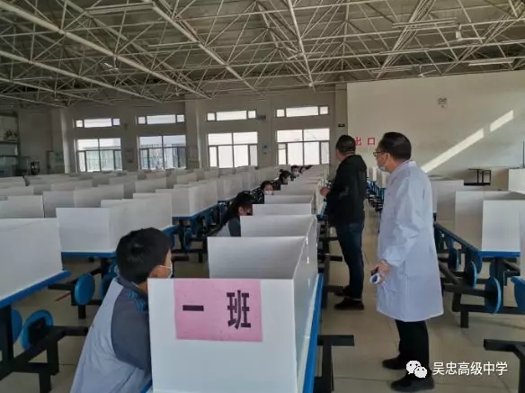 在高三学子错时错峰熟悉各项复学事宜的同时,吴忠市疾控中心一行人员、吴忠市教育局副局长柳佳伟同志等前后到我校进行视察。