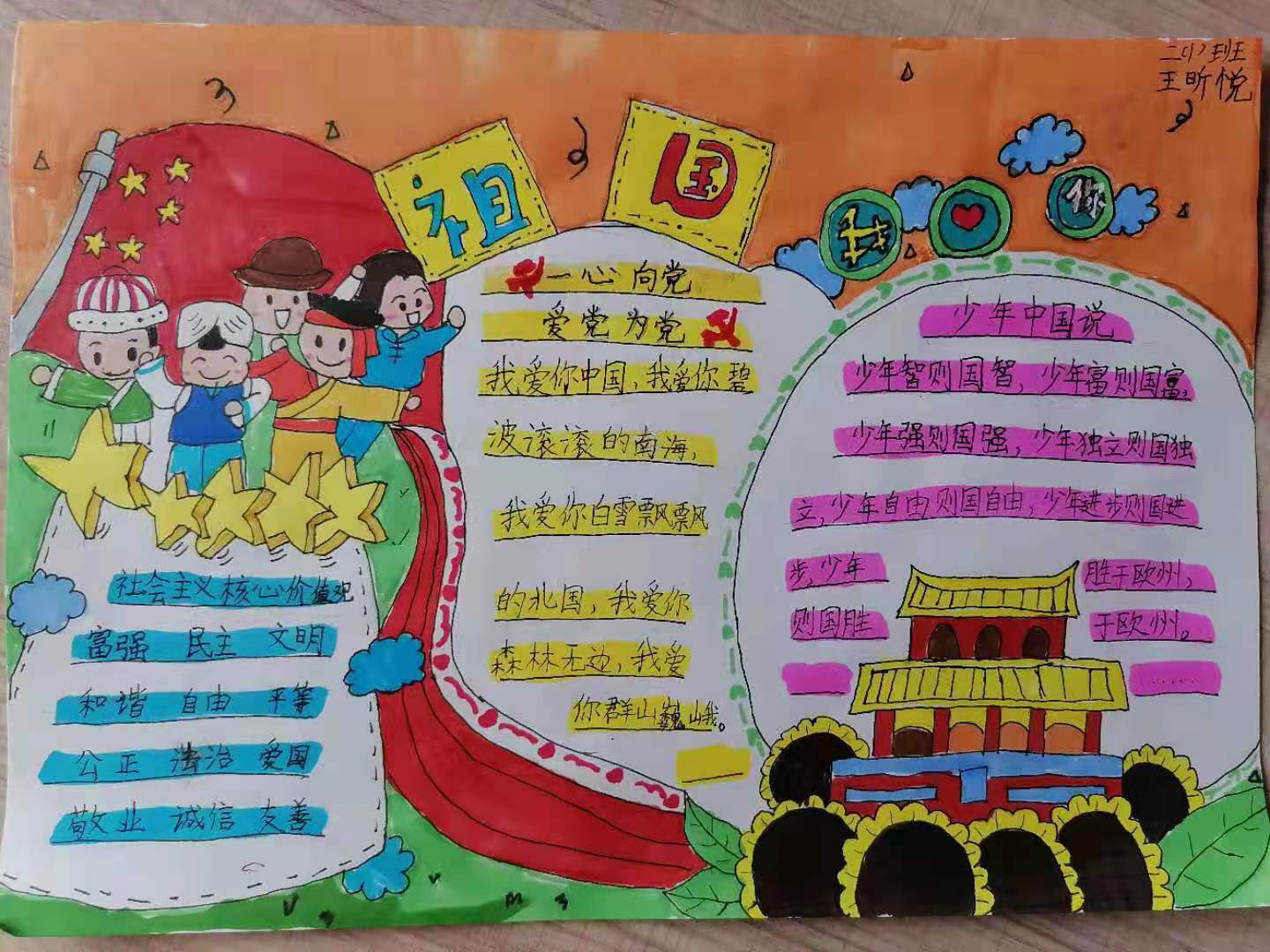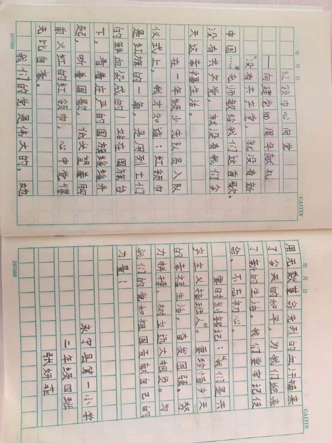 少先队员们用文字书写自己心目中伟大的祖国。