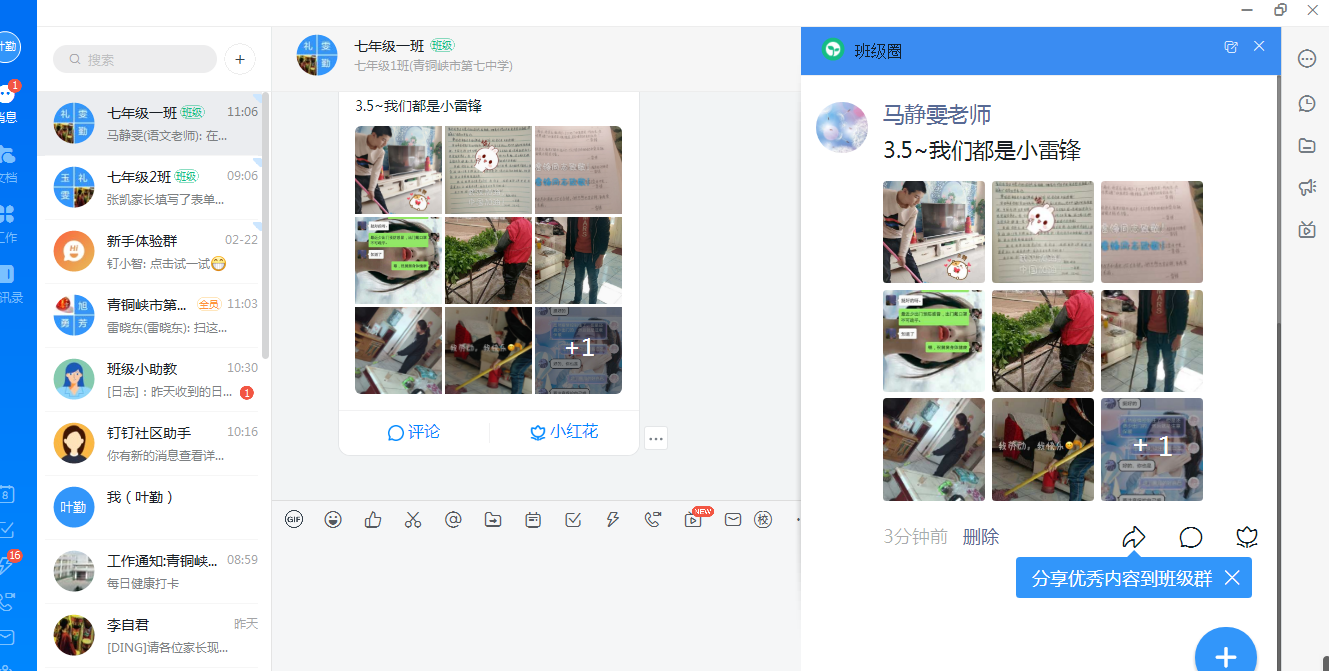 在接到上级关于“停课不停学”工作的通知时,学校及时开展线上对教师使用钉钉直播教学的培训工作,设置课程表,安排九年级毕业班的教师进行钉钉直播课堂的教学工作。七、八年级的教师同样不甘落后,在督促七八年级学生接收宁夏、青铜峡空中课堂的直播教学同时,在教务处的细致安排下,有条不紊地进行课业辅导。