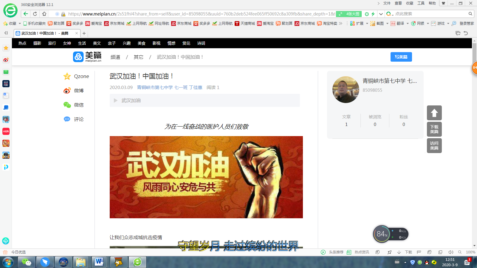 疫情防控的同时,更不能懈怠学生的德育教育。学校政教处、团委充分利用重要节点,如雷锋日、三八妇女节等开展线上活动,鼓励学生制作手抄报,制作美篇,传播正能量,同时对学生进行感恩、劳动教育,要求学生在家主动承担家务。