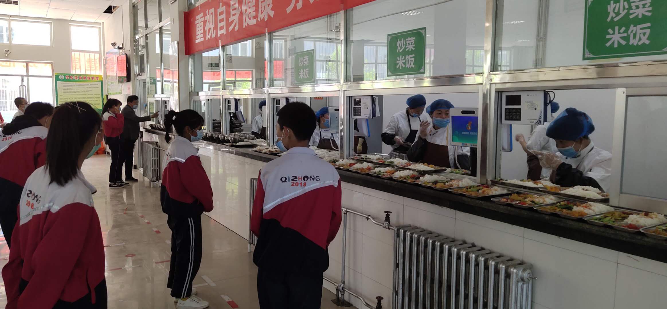 午间,学生们有序排队用餐,餐后在宿舍门前测温进入宿舍休息,整个过程秩序井然,同学们都能遵守学校防疫期间的各项规定,复学工作顺利完成。