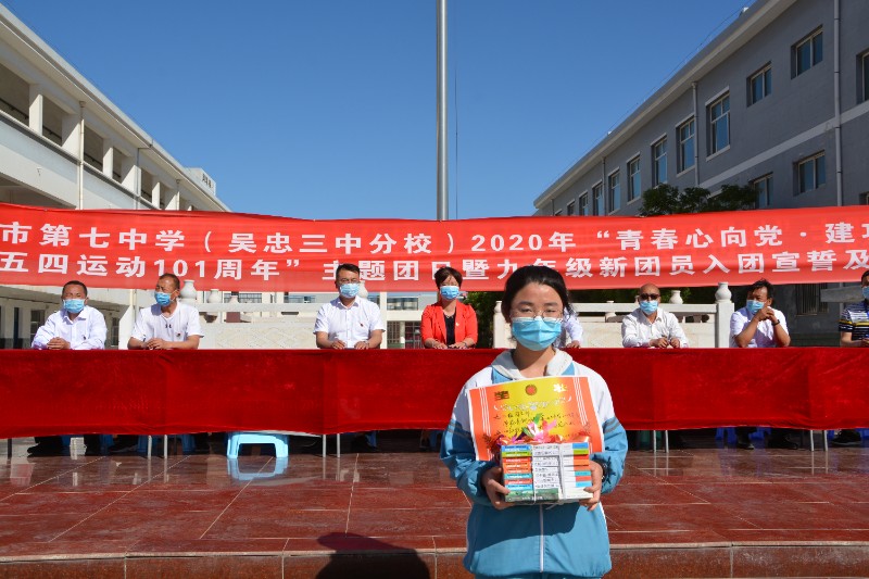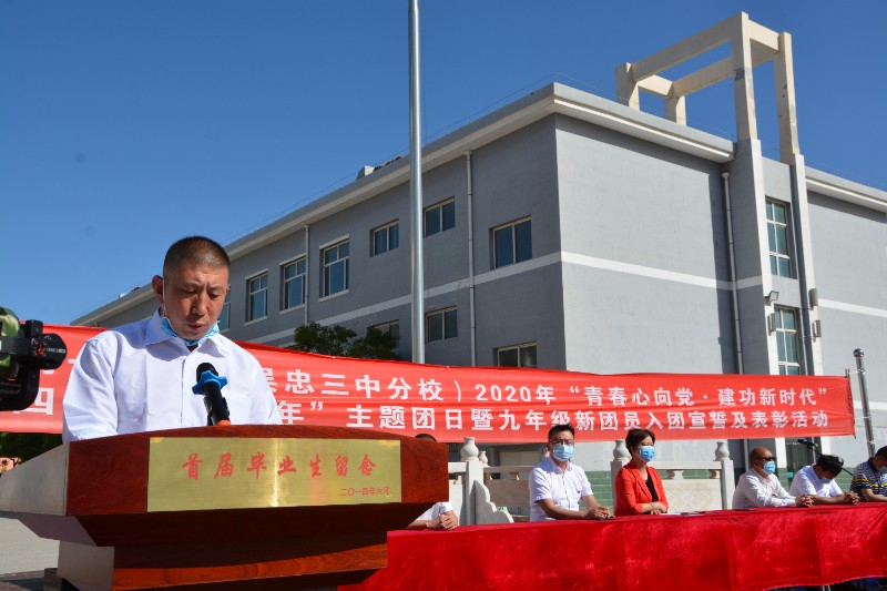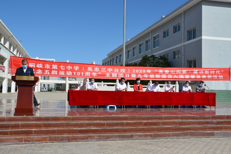 5月11日下午,晴空万里,七中的操场上团旗飘扬,青铜峡市第七中学(吴忠三中分校)隆重召开了青春心向党,建功新时代,纪念五四运动101周年,九年级新团员入团仪式,全体教师和八、九年级学生参加了此次活动,活动伊始,全体师生起立高唱国歌,学校团支部书记朱宇坤随后宣读了团支部关于新入团同学的决定,新团员们昂首挺胸,如沐春风,新老团员代表先后发言,吐露了自己的心声,他们表示要不负青春,在新时代努力拼搏,为共产主义奋斗,为团旗添光,为祖国的明天奋斗不息。之后,新团员在团旗、团徽下进行了庄严的入团宣誓,学校全体领导给新团员佩戴团徽,最后,对优秀团员进行了表彰,学校党支部副书记白少瑜发表热情洋溢的讲话,他回顾了团的历史与发展,指出共青团是中国共产党领导下的,信仰共产主义的群众性组织,一个个优秀的共青团员为祖国无私奉献,做出了巨大的贡献,他希望新团员们要刻苦学习,不断提高自己的文化素质,提升为祖国做贡献的思想,做一个真正的共产主义的接班人。