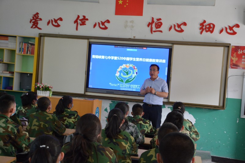 5•20全国学生营养日,提醒我们要重视营养问题,要营养均衡。今年以来,为均衡学生营养,更好预防新冠肺炎疫情,5月18日下午,青铜峡市第七中学组织七、八年级学生开展“合理营养膳食,关注学生健康”的主题教育活动。