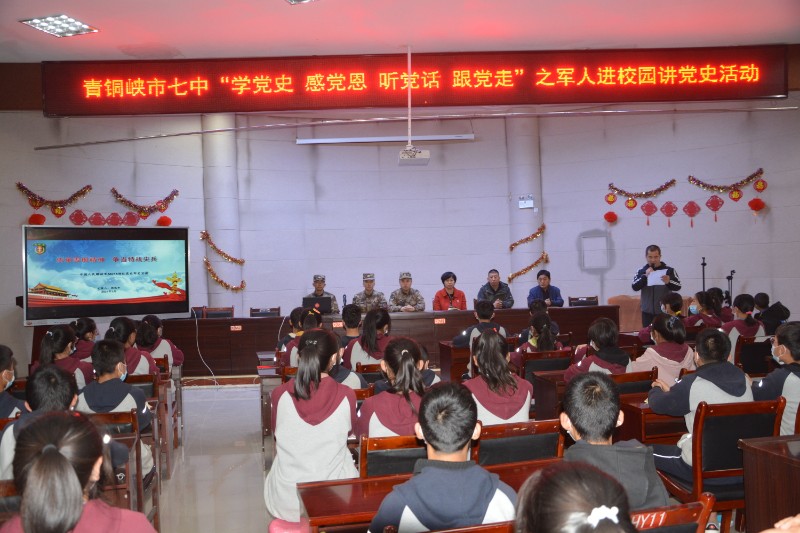为隆重庆祝中国共产党成立100周年,进一步拓宽我校师生的知识面,增强师生的国防意识,培养全体师生爱国拥军热情,我校于3月17日下午举办了“学党史 感党恩 听党话 跟党走”之军人进校园讲党史活动,300余名师生参加了这次活动。