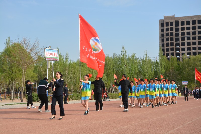 4月20日,青铜峡市第十四届中小学生运动会隆重开幕了,市七中组队参加了此次盛会,在本次运动会上七中代表队屡传佳绩,在开幕式上进行的全市中小学生啦啦操比赛中喜获初中组第一名,团体三等奖,在随后的各项比赛中,七中运动员们勇敢拼搏获得总分140分的好成绩,分数并列第一,团体第二名的佳绩,在比赛中九(8)班白亚军同学打破男子铅球市记录,达到12.06米的好成绩,此次运动会我校共摘得个人单项第一名5项、第二名5项、第三名4项,还获得团体女子4x400米第一名和4x100米第二名,在此次运动会中涌现出了一批勇于拼搏,团结协作,充分体现了七中精神的同学,他们是:九(6)班马佳琴、九(2)班庞梦馨、九(3)班马伊娜、九(9)班潘宇、九(7)班马瑛等同学,他们是每个同学的榜样。