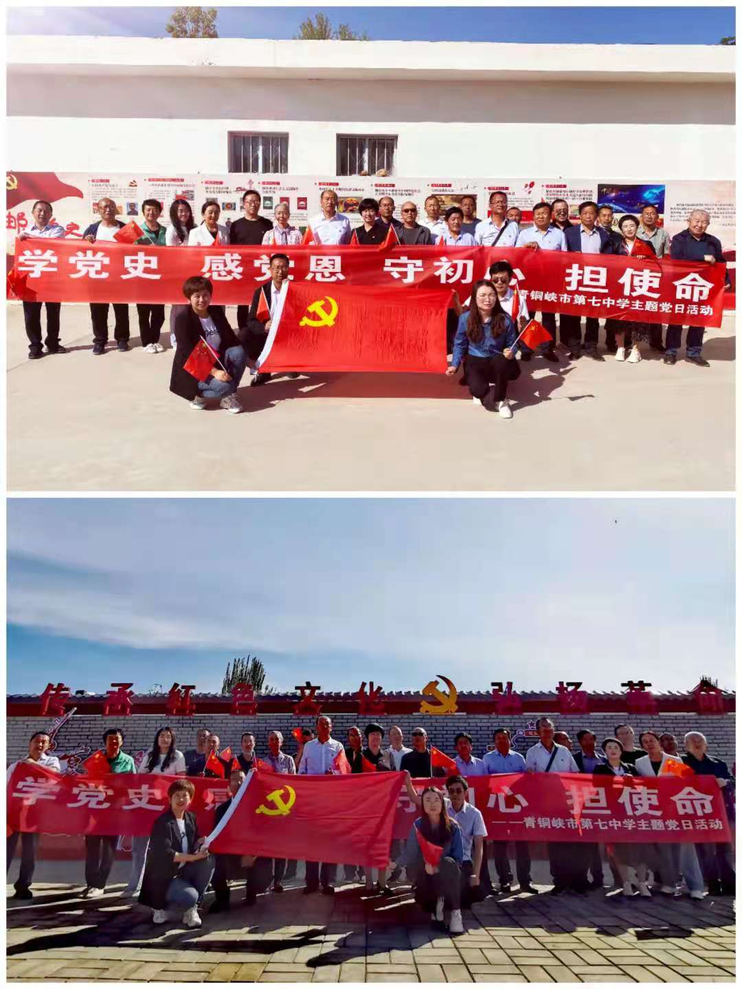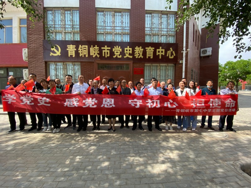 2021年5月21日下午市七中组织全体党员教师到青铜峡市瞿靖党史教育中心和青铜峡市党史教育基地-金山集邮博物馆参观学习,进一步了解我们党百年奋斗的光辉历程、深刻认识我们党百年来的历史贡献、学习传承我们党长期奋斗中铸就的伟大精神。
