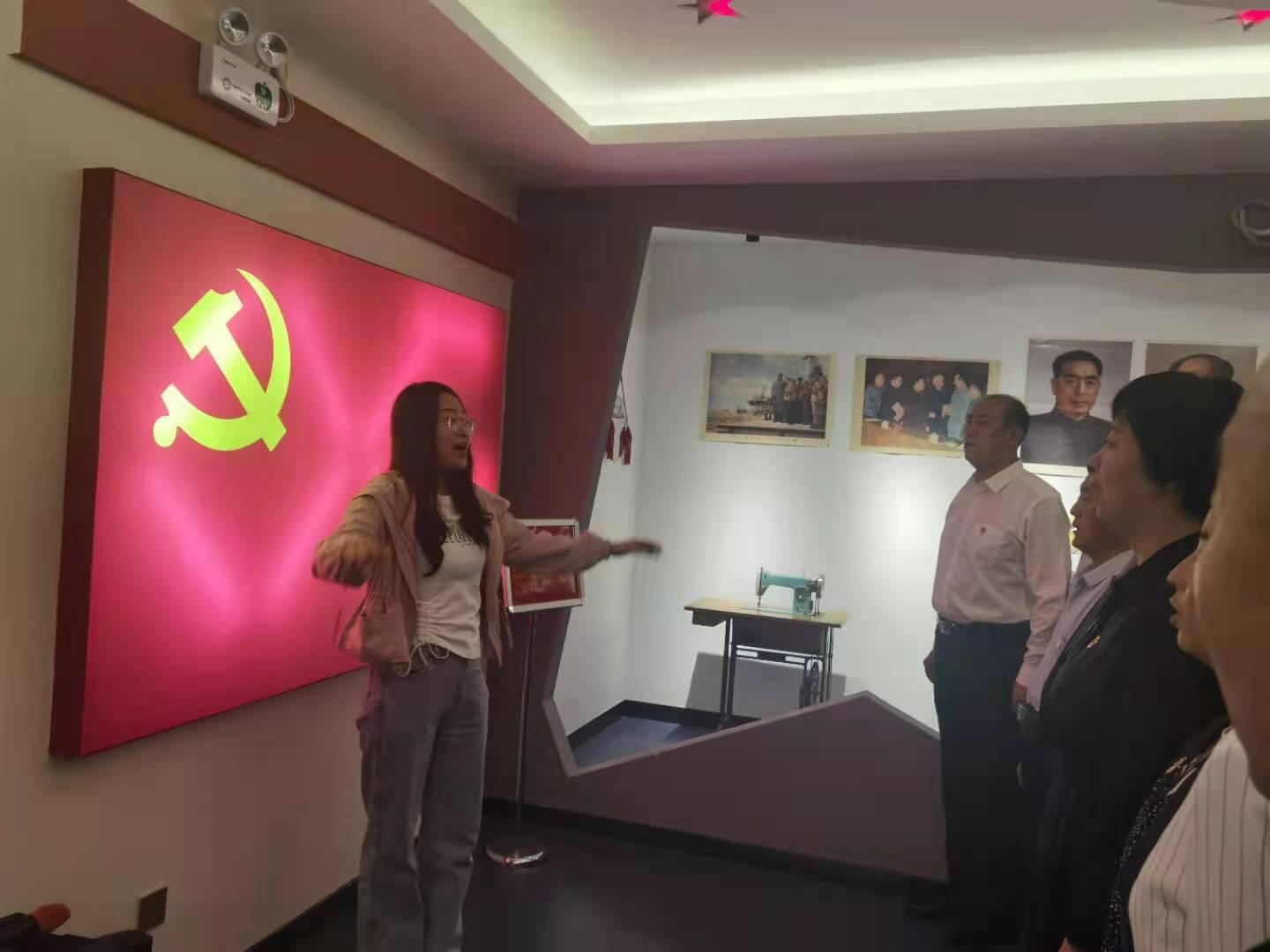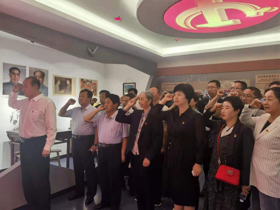 接着,全体党员在我校党支部副书记陶明川同志的带领下,神情肃穆、举起右拳,在党旗下庄严宣誓。铿锵誓言久久回荡,让现场所有党员更加坚定牢记自己的庄严承诺,不忘初心,牢记使命。在我校党员教师包曦指挥下,全体党员教师齐唱 《没有共产党就没有新中国》。随后,全体党员跟随解说员杨老师参观,我校党员教师们认真参观学习党的发展历程。活动第二项,全体党员教师参观家风馆,学习习近平总书记关于家风家训的重要论述。活动第三项,全体党员教师到青铜峡市党史教育基地-金山集邮博物馆参观学习。