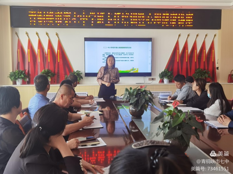 青铜峡市第七中学于5月25日下午,在会议室组织了一次班主任心理健康讲座活动,由专职心理健康教育老师张海燕主讲,各班班主任参加了培训。