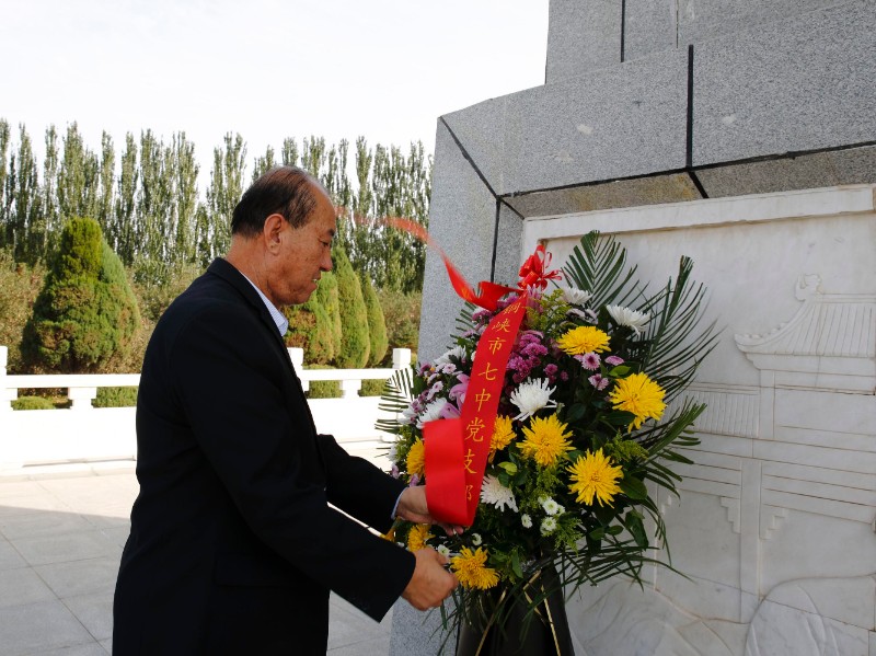 2021年10月15日下午青铜峡市第七中学党支部组织全体党员赴青铜峡镇开展“缅怀革命先烈 弘扬伟大建党精神”主题党日活动。