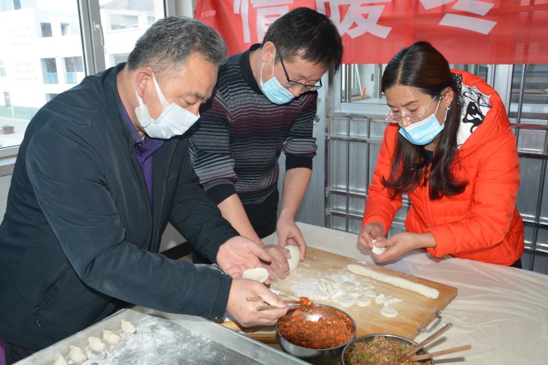 教职工的包饺子活动开始之前,举行了一个小小的仪式,学校党支部副书记陶明川同志介绍了本次活动的意义及包饺子比赛的规则。然后由包曦和彭雪涛老师介绍了冬至日的来历,四位年轻教师分别朗读了冬至日的文化习俗和诗歌、文章等,向大家详细介绍了冬至节日的深厚文化底蕴,比赛开始了,各个教研组的老师们争先恐后干起来,赶皮的赶皮,包的包,形状各异的饺子在他们手中呈现,一时间,百花齐放,争奇斗艳,各显神通,草帽型的、老鼠型的、元宝型的……,无数双手,无数个饺子,当一盘盘饺子呈现在大家面前,气氛达到高潮,大家纷纷拍照留念,美好的冬至日也留在了大家的心中。