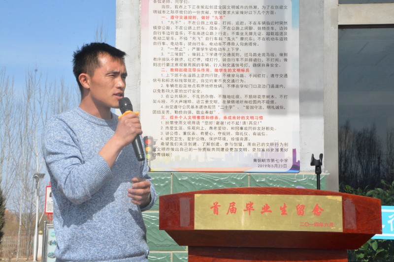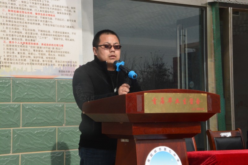 在会议上优秀教师代表丁小林老师发言,他讲述了自己在班主任工作中的收获,也回忆了工作中一些感人的故事,一点一滴的往事如何汇聚成自己不断前行的动力,令现场师生感同身受;随后优秀学生代表九年级1班沙绍佳同学发言,他向全体同学分享了自己学习的经历和感悟,鼓励同学们要努力争先,奋勇拼搏,不负韶华,让自己的青春更精彩;李敏校长最后作总结讲话,她从一年来同学们身边发生的一些事情讲起,从正反两个方面的事例来教育同学们要做诚实、守纪、品学兼优的好学生,要向先进、模范学习,激励教师要努力钻研教育教学,成为育人的先锋;激励同学们要努力拼搏,让自己的青春留下灿烂的光芒,使七中成为教育和生活上有温度、教学和学习上有力度的学校。