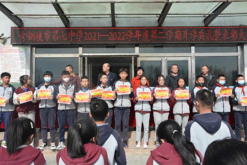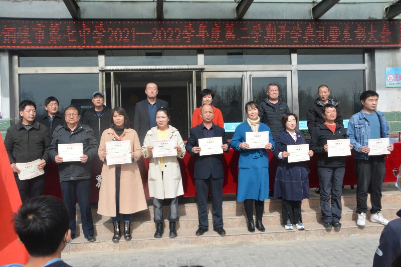 3月3日下午,青铜峡市第七中学隆重召开了2021-2022学年第二学期开学典礼暨表彰大会,市七中全体师生参加了此次大会,会议由市七中党支部副书记陶明川同志主持,此次会议共表彰了优秀年级组2个、优秀班集体9个、优秀书香班级9个、优秀教研组4个、文明宿舍12个、优秀教研组长4名、优秀教师32名,教研先进个人7名、优秀班主任9名、体教融合先进个人16名、优秀教育工作者7名、优秀员工3名、优秀学生115名”、好学生69名、进步学生63名、优秀班干部23名、优秀学生会干部18名、优秀宿舍长及楼道长18名、社团优秀社员42名。