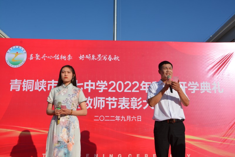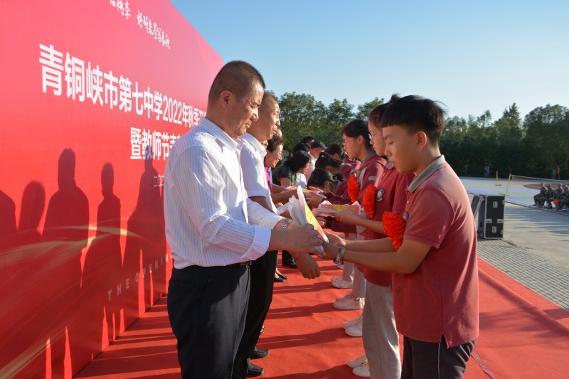 秋季的七中金风习习,花团锦簇,9月6日下午青铜峡市第七中学隆重召开了2022年秋季开学典礼,市七中全体师生1200多人和30位家长代表参加了本次典礼,在庄严的国歌声中,开学典礼开始了,主持人隆重的介绍了七中新一届校领导班子,然后教师代表集体朗诵了诗歌《我们的岗位》,那豪迈的声音飘荡在七中的上空,不负韶华、力争上游的精神从字里行间渗透了出来。随后进行的是表彰环节,由刘晔副校长宣读关于优秀年级组、优秀班主任、优秀教研组、优秀教研组长、优秀教育工作者、教研先进个人等集体和个人的表彰决定;由高占林副校长宣读关于优秀班集体、“三好”学生、优秀学生会干部“成绩优秀学生”等班集体和学生个人的表彰决定,随着铿锵的音乐,获奖教师代表和学生代表上台领奖。