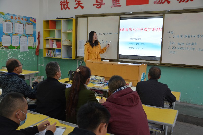 10月12日清晨,市七中数字教材应用培训在晨雾未尽时便开始了,全校一线教师参加了此次培训,培训的主讲教师由各个学科应用数字教材中脱颖而出的教师担任,各个学科的教师则针对性的参加本学科的培训,语文教师着重对课文的诵读,引课、重点语句的解读及课堂氛围的渲染进行深入探讨;数学教师则围绕解题步骤的呈现及作图层次的完美再现争的面红耳赤;理化生教师则对实验及现象的呈现时机一步步引申而费尽脑汁;政史地教师则对视频展示及作用展开研讨;英语教师面对一段段标准的语句引读而欣喜不已。这是市七中进一步深入开展数字教材应用的一个窗口,自数字教材应用以来,教师们欣喜的发现,数字教材给课堂带来了新的变化,再也不苦恼海量的资源将自己包围,只用合适的合量的资源就能完成教学,并进一步节约了时间,提升了教学效果,由此掀起了学习应用数字教材进行教学的高潮,为此,市七中因势利导,加紧培训,推出一批应用达人,并提倡将数字教材校本化,适当改造加工,形成个性差异,由此带动应用的实效性,提升课堂教学质量,为七中的教学质量转变提供契机。(七中 叶勤)