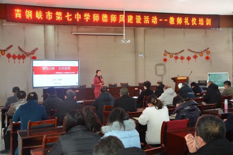 2月20日,青铜峡市第七中学开学工作大会刚刚落下帷幕,紧张的教师培训随即开始了,本次教师礼仪培训邀请了吴忠市杜建霞老师进行培训,市七中全体教职员工参加了此次培训,培训的主题是“学为人师、行为人范”。