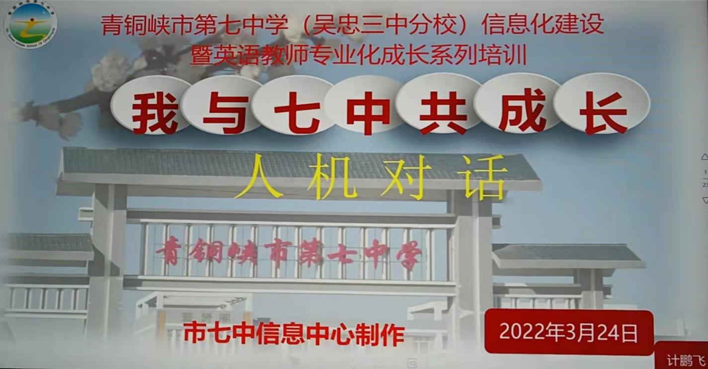 2022年3月24日下午,青铜峡市第七中学信息化中心组织本校全体英语教师进行英语人机对话培训。计鹏飞老师担任本次培训主讲教师,他从英语听说智能教学系统,包括教师端、学生端,以及用于教师上课组织互动教学、随堂测试、考试讲评,课后练习、自主学习、听说练习、分析报告、以及资源中心的使用等等进行了详细讲解。