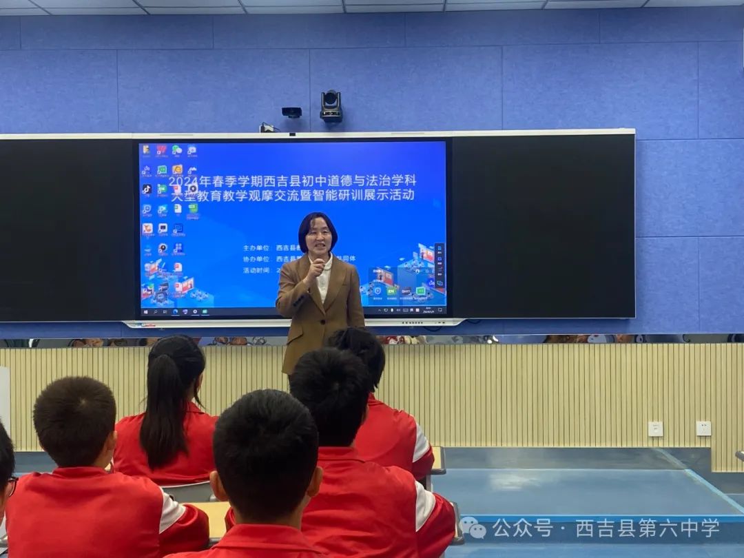 优课展风采,研讨促发展。为全面贯彻党的教育方针,遵循教育教学规律,落实立德树人根本任务,按照“聚焦课堂教学,城乡一体化推进、教研数字化转型”的总体思路,以智能研修中心AI 教学行为分析数据为支撑的智慧教研为主要内容,线上线下结合开展全县大型观摩交流活动,根据《关于印发<2024年全县大型教育教学观摩交流活动暨智能研训展示交流活动方案>的通知》(西教体发〔2024〕42号)文件精神,西吉六中教育共同体于5月9日在西吉县第六中学开展全县初中道德与法治学科大型教育教学观摩交流暨智能研训展示活动。