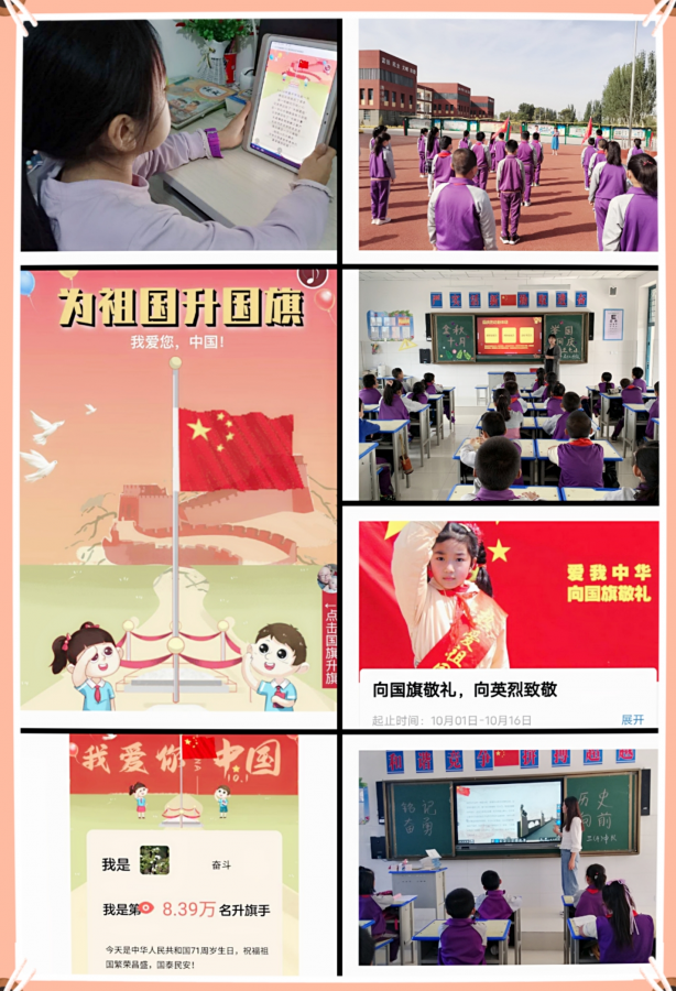 首先,德育处组织全体师生举行了庄严的升旗仪式,并发出了“向国旗敬礼,向英烈致敬”的活动倡议,要求大家向英烈看齐,牢记自己肩上的责任,刻苦学习知识,坚定理想信念,为实现中华民族伟大复兴的中国梦时刻准备着!接着,各中队辅导员指导队员们积极登录“文明银川”微信公众号,通过线上升旗向国旗敬礼并签名寄语,表达热爱祖国、祝福祖国、用中国梦引领人生航向的美好心声。同时,各中队还以国庆节为契机,带领队员们一起回顾了中国共产党领导中国人民取得伟大胜利的光荣历史,宣讲抗日战争中的感人事迹和英雄人物,引导队员们铭记历史、缅怀先烈,进一步感受英雄人物的先锋引领作用。为了更好地落实本次活动,德育处还通过云校家活动广场发布了“向国旗敬礼  向英烈致敬”活动,引导队员们积极上传活动照片,交流自己的活动感受。