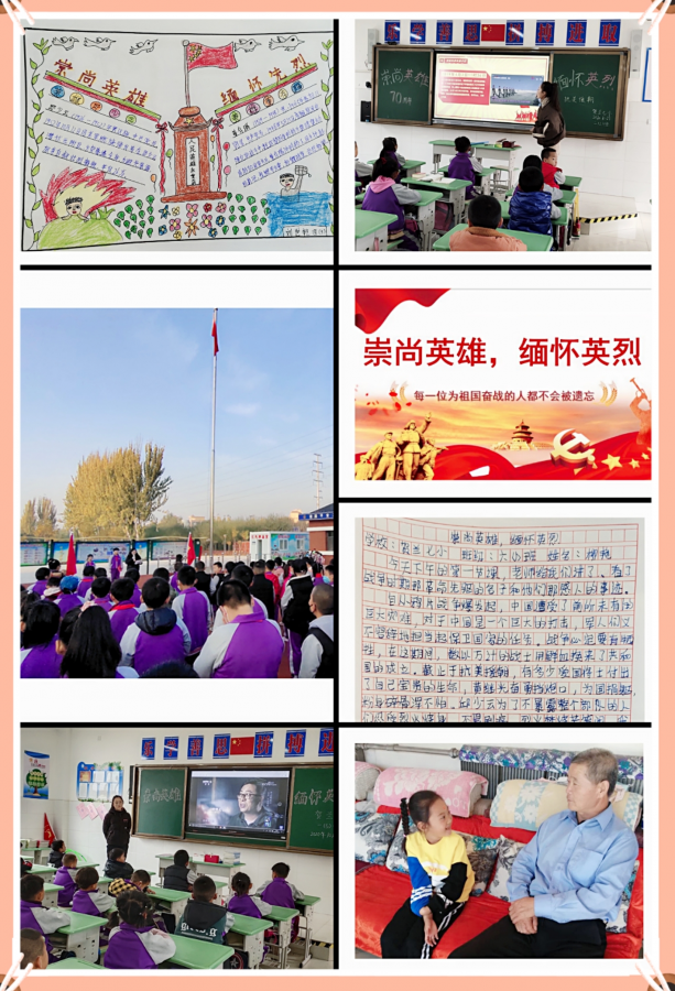为深切缅怀英雄烈士的不朽功勋,继承和弘扬伟大抗美援朝精神,增强少先队员对先锋榜样的真挚情感,形成学习先锋、争做先锋的良好氛围。在纪念中国人民志愿军抗美援朝出国作战70周年之际,贺兰七小积极开展“致敬抗美援朝,争做时代新人”主题教育活动。