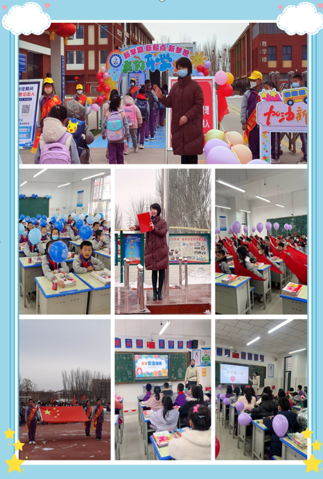 2月13日早晨7:30,贺兰七小全体行政领导满怀激动的心情在校门口迎接全校师生的到来。窗明几净的教室、温馨的祝福语、五颜六色的气球、崭新的课本……让每一个孩子的脸上都洋溢着幸福的笑容。校园里因为孩子们的到来充满了勃勃生机!