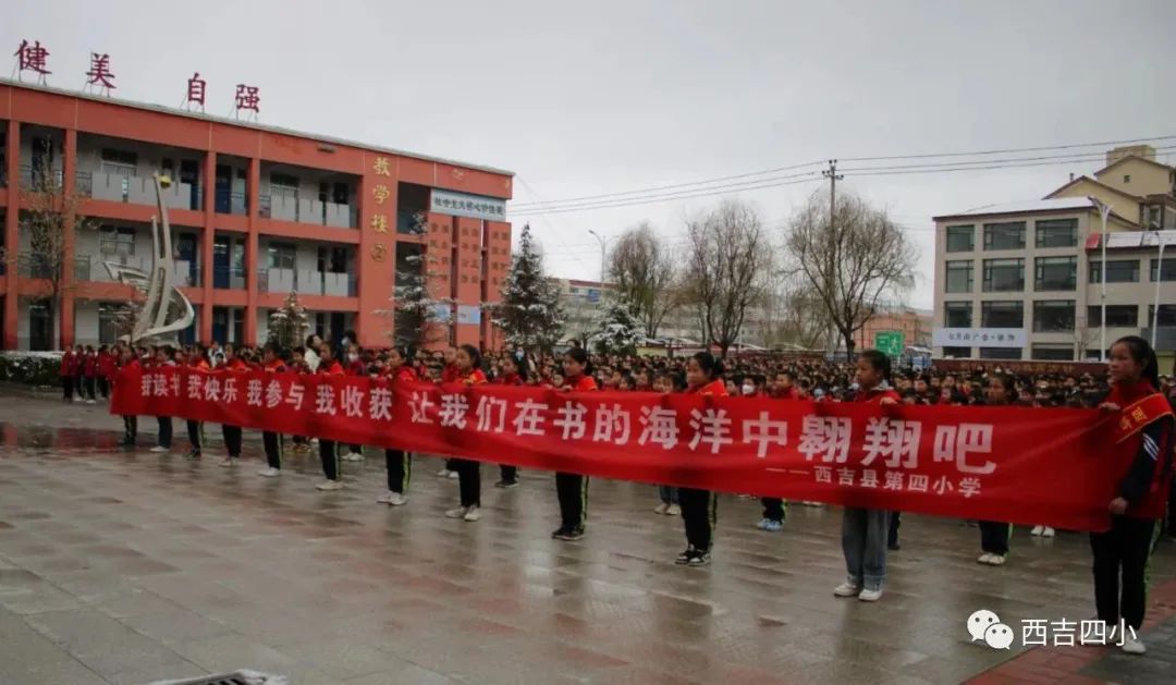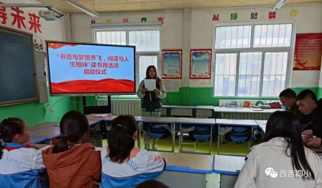 2023年4月23日上午,西吉县第四小学教育共同体在各自学校举行了“书香与梦想齐飞,阅读与人生相伴”为主题的读书月活动启动仪式。