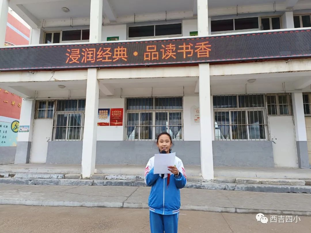西吉县第四小学教育共同体各学校向全体师生发出读书倡议:全体师生积极参与学校举办的读书月活动,多读书,读好书,与书为友,益智明理。全体学生庄严宣誓:“走近书本,拥抱书本,热爱读书!我读书,我快乐!”。铿锵有力的誓言响彻校园上空,表达了孩子们多读书、读好书的信心与决心。