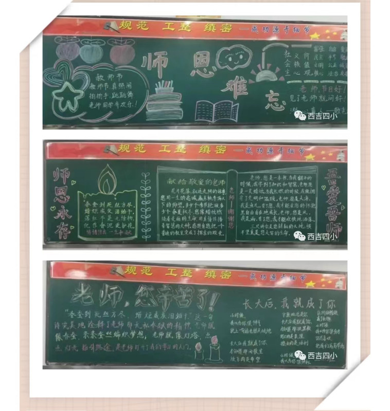 为了培养学生从小学会感恩, 学会表达对老师的尊重和爱戴,9月5日,学校组织各班以“躬耕教坛 强国有我”为主题办一期黑板报。